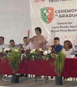 En la ceremonia de graduación que llevó por nombre “Laura Peralta Aquino, el director del plantel Miguel Pérez Monárrez dio la bienvenida a los asistentes y expresó que esta es la quinceava generación de alumnos que egresan del plantel CECyTE Puerto Libertad.