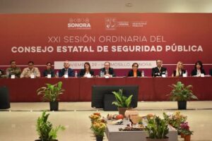La alcaldesa Janeth Mazón García asiste a la sesión de consejo Estatal, dónde estuvo el Gobernador Alfonso Durazo, la Secretaria Ejecutiva del Secretariado Ejecutivo del Sistema Nacional de Seguridad Pública Clara Luz Flores, representantes de las autoridades federales de seguridad y los alcaldes de los municipios de Sonora.