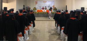 En su mensaje agradeció la invitación y reconoció el excelente nivel académico de los egresados del COBACH Pitiquito, convocándolos a continuar su preparación profesional hasta alcanzar sus metas y propósitos en la vida.