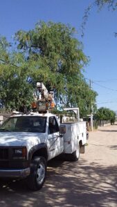 Debido a una problemática que se presentaba en el tendido eléctrico, se llevó a cabo la poda de varias ramificaciones de mezquite que rodeaban y rozaban los cables de conducción eléctrica, así mismo para evitar algún inconveniente futuro, se llevó a cabo el trabajo del reporte de la ciudadanía a Servicios Públicos Municipales a cargo de Jesús Vingochea H. y su equipo asistente de podar los tallos y brotes de mezquite.