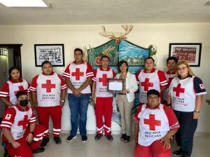 En una reunión con elementos de Cruz Roja Pitiquito a cargo del coordinador de socorristas Bryan Márquez Badilla, la alcaldesa Janeth Mazón García reconoció la labor tan valiosa y noble que ejercen en la comunidad de Pitiquito, comisarías y rancherías, así como su esfuerzo para enfrentar la difícil situación de los servicios de emergencia.
