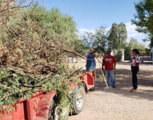 Con el fin de evitar la acumulación y aparición de animales indeseables, se realiza la poda de árboles y recolección de basura en el interior del Jardín de Niños, donde la alcaldesa Janeth Mazón García continúa supervisando los trabajos realizados para garantizar la seguridad de la niñez.