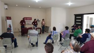 Con una asistencia de 16 adultos mayores, personal de Bienestar conformado por Fernando Meza Cañez e Irais Idarly Celaya Ramírez; apoyaron para el registro y la entrega de tarjetas a través de la Secretaría de Bienestar fueron otorgadas, a los asistentes se les informa así mismo, que se está trabajado para que quede como un derecho constitucional y nadie les puede cancelar a futuro ese derecho.